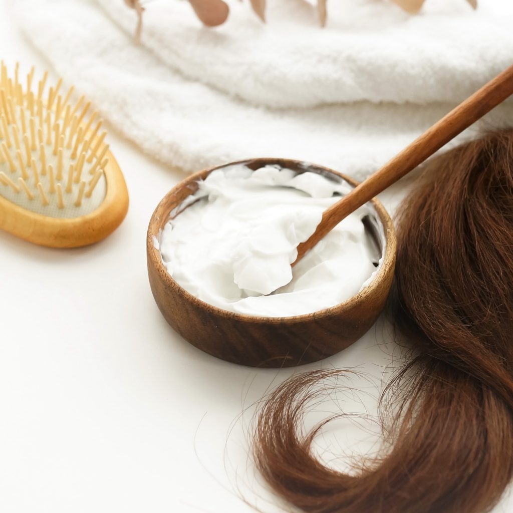 • زيت جوز الهند + عسل + صفار بيضة.